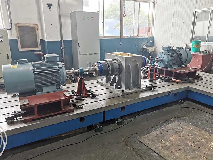 齒輪箱試驗臺是檢測齒輪箱整機性能指標的試驗裝置。該裝置測試齒輪箱的各種性能參數(shù),包括:齒輪箱輸入轉矩、轉速、功率,輸出轉矩、轉速、功率,效率,溫升,振動、噪音等。該試驗臺能夠滿足各類齒輪箱性能測試,為減速機的生產(chǎn)制造、維修和現(xiàn)場應用提供準確的參數(shù)指標。 二、齒輪箱試驗臺組成: